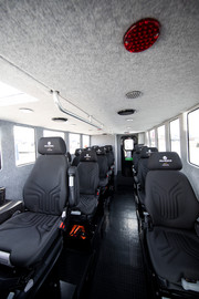 Lighting & Onboard Comfort: LED navigation and deck flood lights, white and red LED cabin lights, Blue LED strobe lights, high powered search light, heating system, 14 Grammar suspension seats, heads and a galley area.